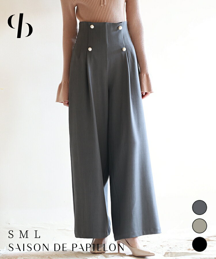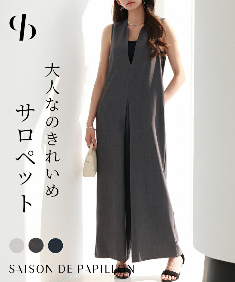 サロペット Vネック ディープVネック サスペンダー付きパンツ ワイドパンツ ジャンプスーツ ロンパース サロペットパンツ ハイウエスト ポケット付き 重ね着 高見え SAISON DE PAPILLON sdprb2720