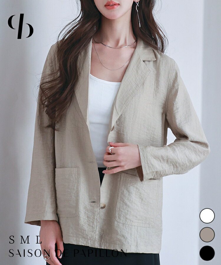 ジャケット レディース テーラードジャケット アウター ゆったり セミフォーマル ヒップ丈 丈長め ヒップ隠れる フロントポケット 薄手 通勤 きれいめ 大人 シンプル リラックス きちんと感 春 秋 SAISON DE PAPILLON sdp0257