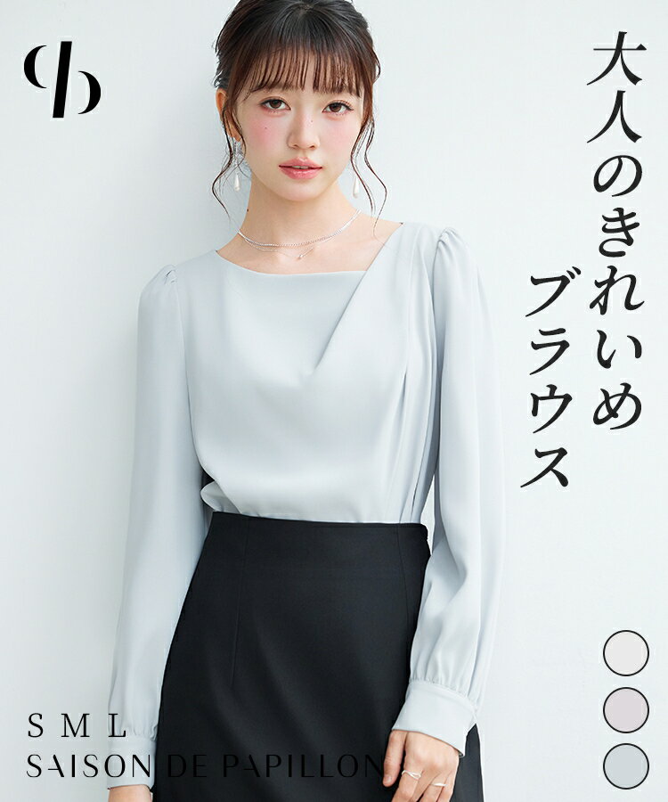 ブラウス レディース トップス ニュアンスネック 長袖 フォーマル ギャザー仕様 ギャザースリーブ アシンメトリー パールボタン ゆったり 着回し とろみ素材 薄手 入学式 卒業式 通勤 きれいめ 大人 女の子 SAISON DE PAPILLON sdp0375