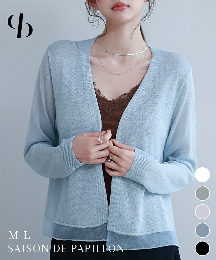 ニット カーディガン 秋 冬 秋冬 レディース 長袖 前後2way 3way ニットトップス プルオーバー レース切り替え ゆったりシルエット オーバーサイズ ドロップショルダー ラウンドネック 体型カバー SAISON DE PAPILLON xyf045307
