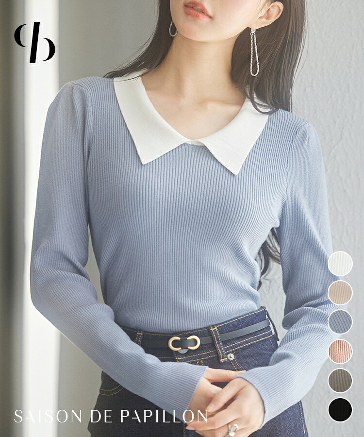 ニット レディース トップス カーディガン プルオーバー 長袖 ショート丈 2way ビジューボタン リブ切り替え Vネック シンプル きれいめ 暖かい 秋冬 SAISON DE PAPILLON sdpxyf6529