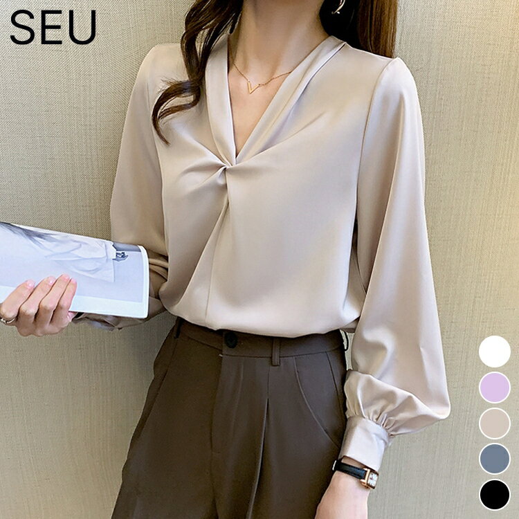 シャツ ブラウス レディース 長袖シャツ vネック ツイスト 袖デザイン ショート丈 ゆったりワイシャツ おしゃれ きれいめ フェミニン シンプル プチプラ トップス ビジネス リクルート オフィスカジュアル SEU seu26nt1088