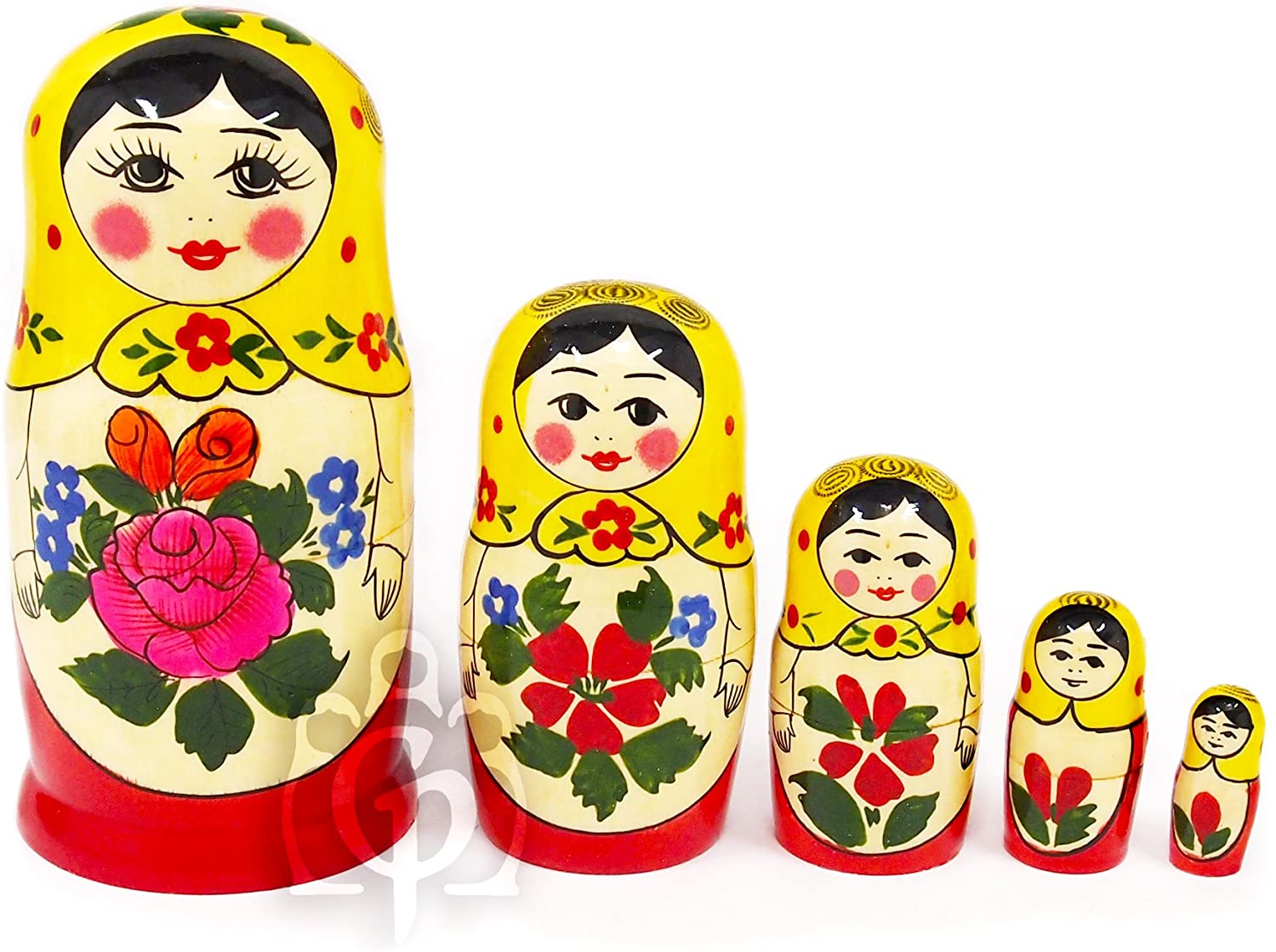 セミョーノフ産 マトリョーシカ 「アリョンカ 5個組」 黄 [ロシア雑貨]