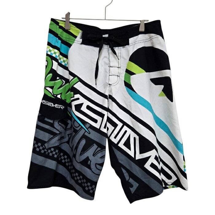 古着 クイックシルバー QUIKSILVER ハーフパンツ ショートパンツ 黒 ブラック グリーン メンズ サイズ32 Lサイズ 韓国 中古 ヴィンテージ ユーズド