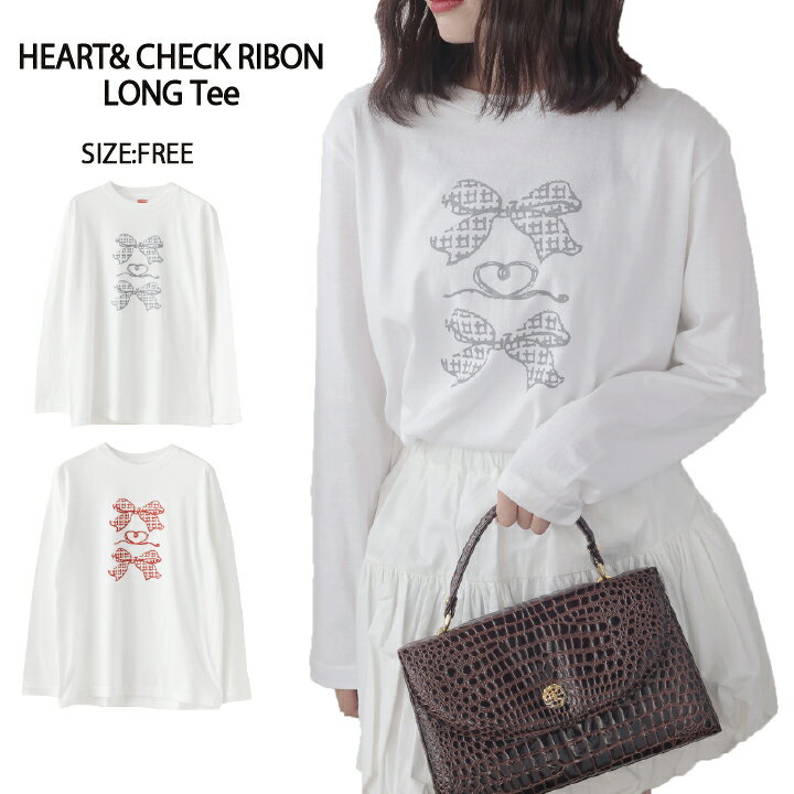 【トレンドライクなリボンデザイン】ハート&チェックリボンロンT