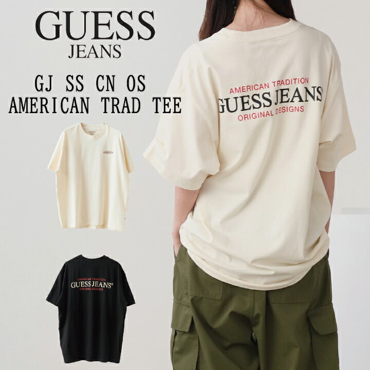 GUESS JEANS/ゲスジーンズ GJ SS CN OS AMERICAN TRAD TEE 半袖Tシャツ バックデザイン ブランドロゴ 大きめ コットン100% メンズ レディース 春夏秋 プレゼント