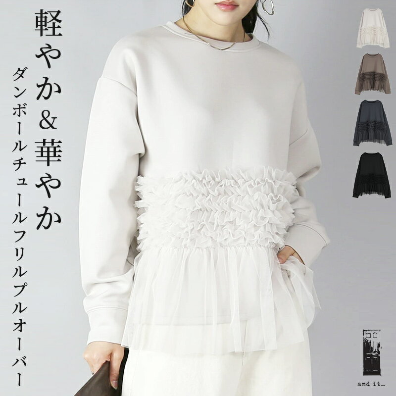 トップス レディース 春夏 チュールシャーリングTシャツ シアー 透け感 涼感 涼しい 半袖 トレンド お洒落 大人可愛い 個性的 上品 きれいめ 綺麗め ふんわり アイボリー グレー グレージュ M メール便5