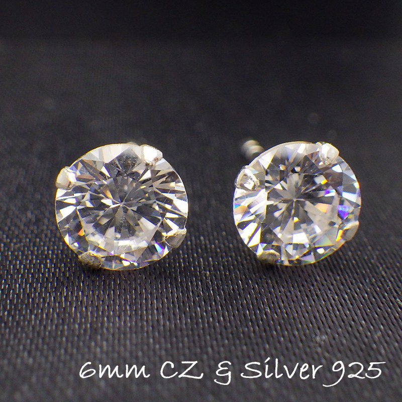 一粒 シルバー925 ピアス 大粒 CZ 6mm 金属アレルギー対応 レディース ニッケルフリー アクセサリー ジュエリー スタッド バレンタイン プレゼント