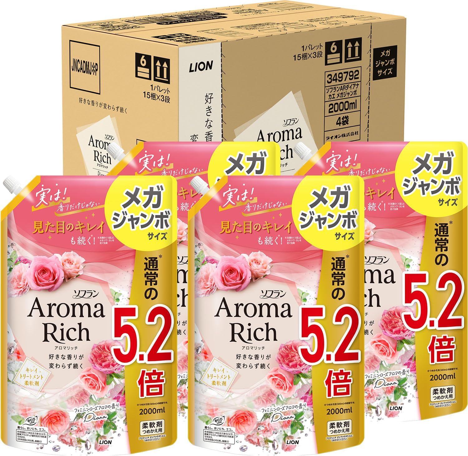 ソフラン アロマリッチ ダイアナ(フェミニンローズアロマの香り) 柔軟剤 詰め替え メガジャンボ 2000ml×4個セット