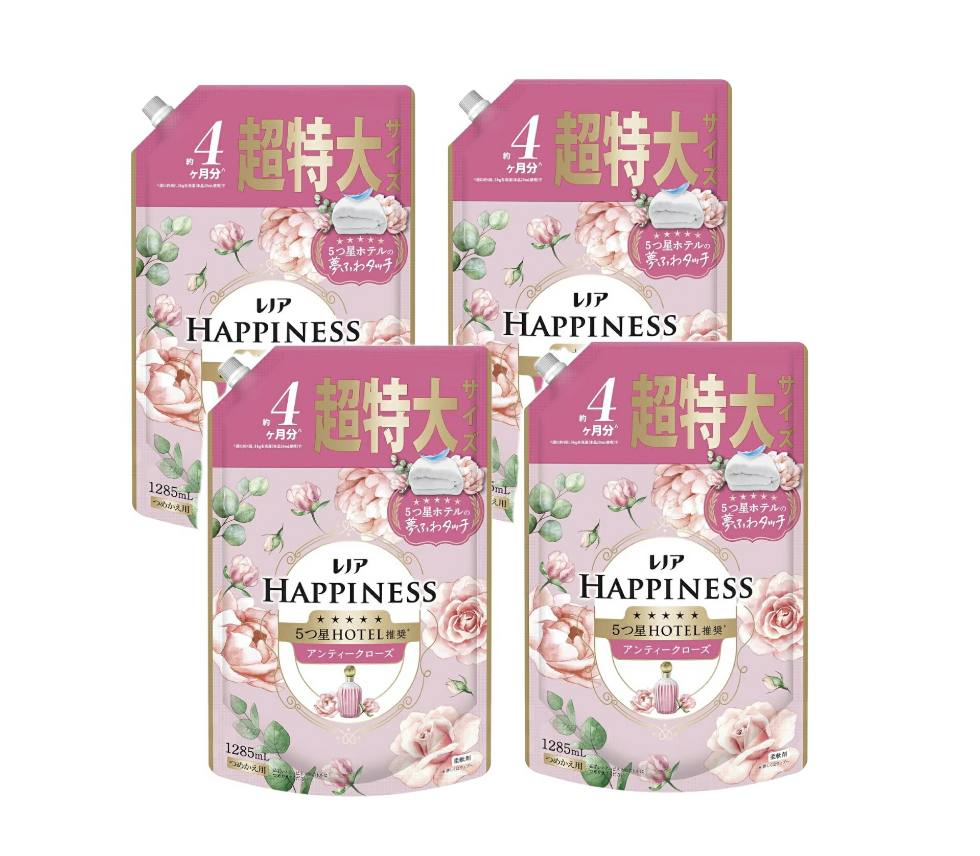 レノア ハピネス 夢ふわタッチ 柔軟剤【アンティークローズの香り】詰替え 超特大1285mL×4袋