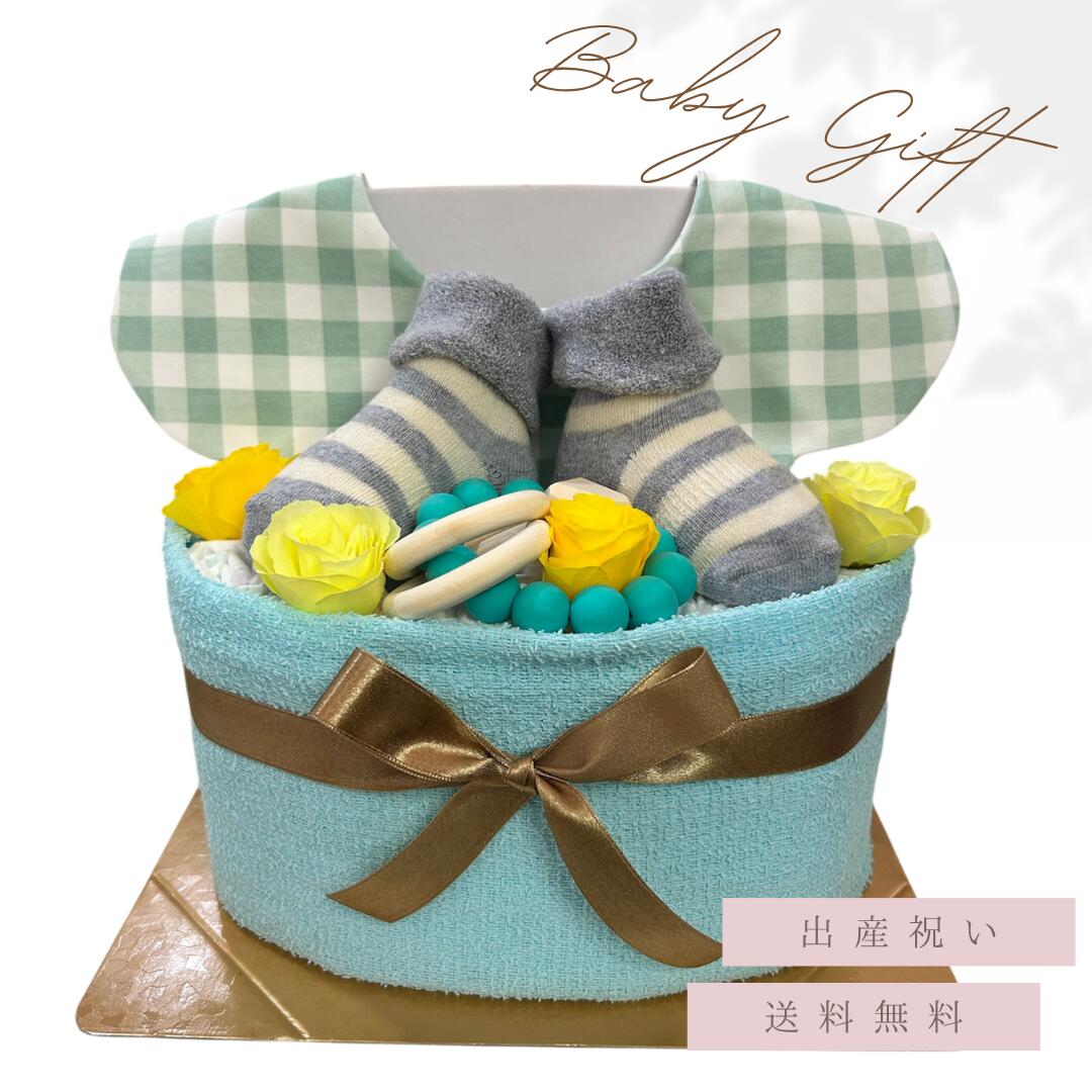 出産祝い おむつケーキ お手頃ギフト 女の子 男の子 靴下 エプロン ナチュラル オムツケーキ 出産祝 贈り物 お手軽 【送料無料】