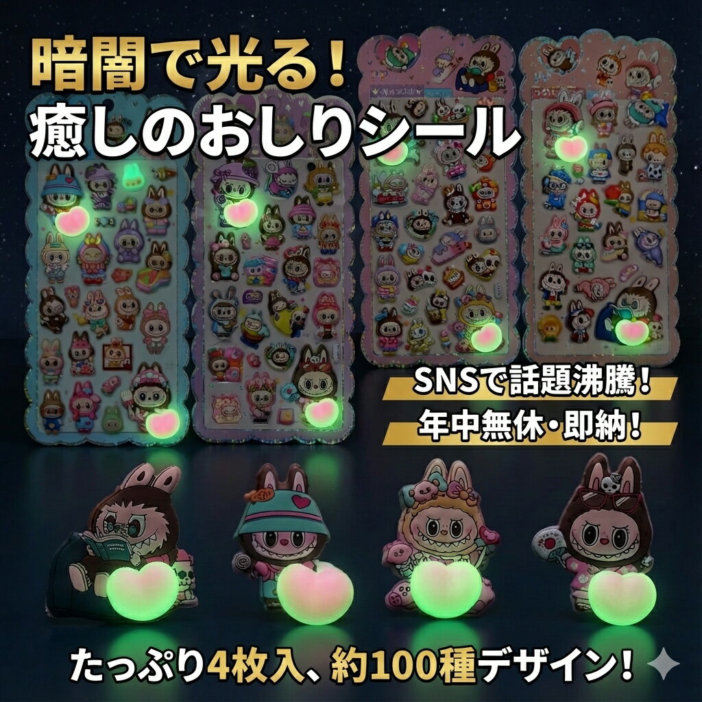 夜光 ぷくぷく お尻シール 福袋セット 4枚入り 約100種類