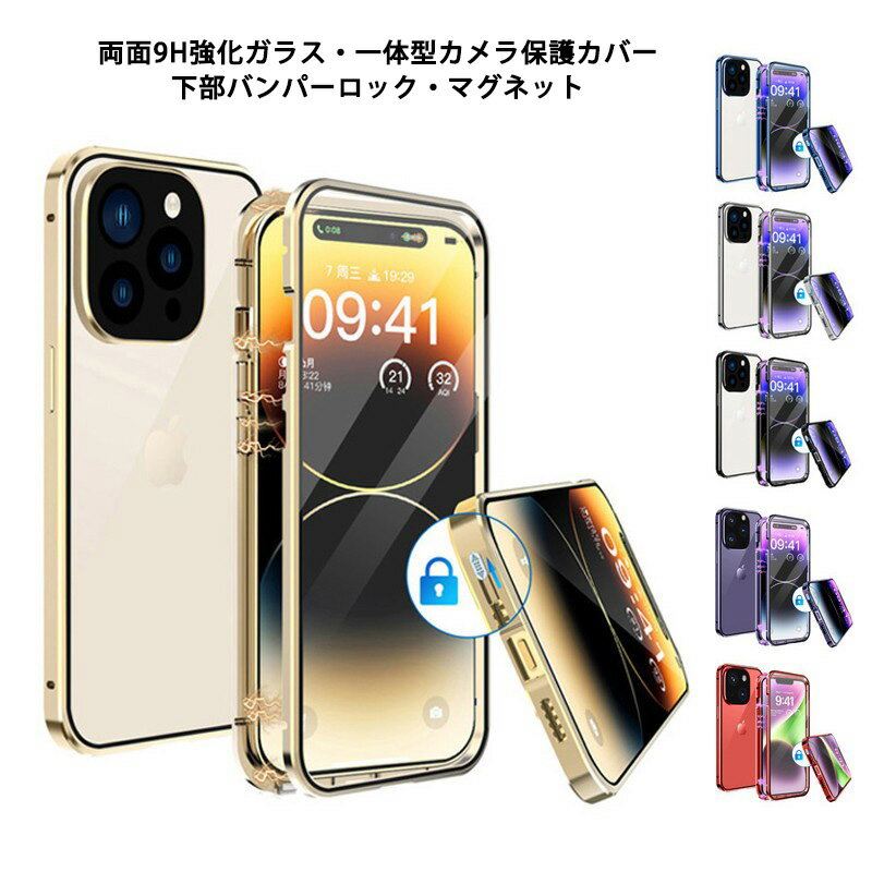 両面ガラス 透明 バンパーロック iPhone15 15Plus 15Pro 15ProMax iPhone14 14Plus 14Pro 14ProMax iPhone13 13Pro ケース カメラ保護カバー 全面保護 両面 9H強化ガラス カバー アルミバンパー アイフォン15 アイフォン14 アイフォン13プロ クリアケース フルカバー