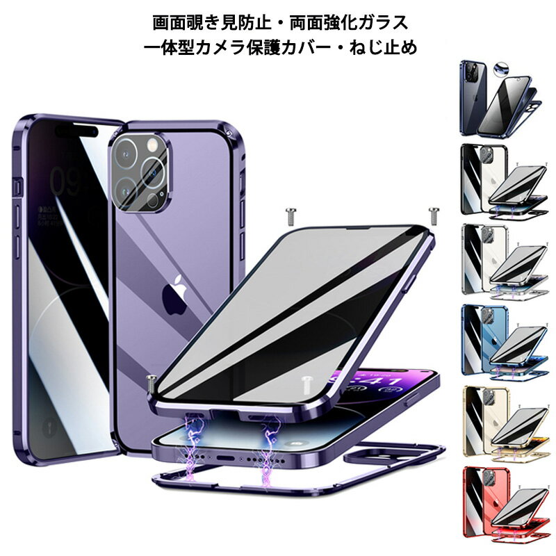 覗き見防止 両面ガラス ねじ止め iPhone15 15Plus 15Pro 15ProMax iPhone14 14Plus 14Pro 14ProMax ケース カメラ保護カバー 全面保護 両面 9H強化ガラス カバー アルミバンパー アイフォン15 15プロ 15プラス アイフォン14 14プラス 14プロ マックス フルカバー