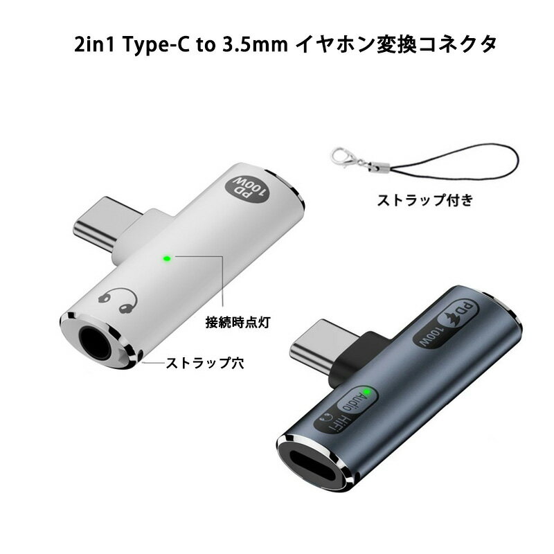 2in1 Type-C to Lightning イヤホン 変換 コネクター Type-C to 3.5mm イヤホン変換アダプター 100W 急速充電 USB-C イヤホン変換コネクタ コンパクト 軽量 紛失防止 ストラップ付き 高音質 Hi-Fi音質 音楽鑑賞 ゲーム ビデオ視聴 通話 マイク 音量調節