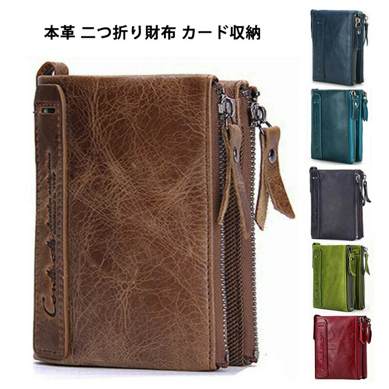 本革 財布 二つ折り メンズ レディース カード収納 小銭入れ 折りたたみ財布 カードケース コインケース 柔らかい メンズ財布 二つ折り財布 小さい財布 ファスナー 大容量 コンパクト 軽量 おしゃれ 人気 プレゼント スタイリッシュ