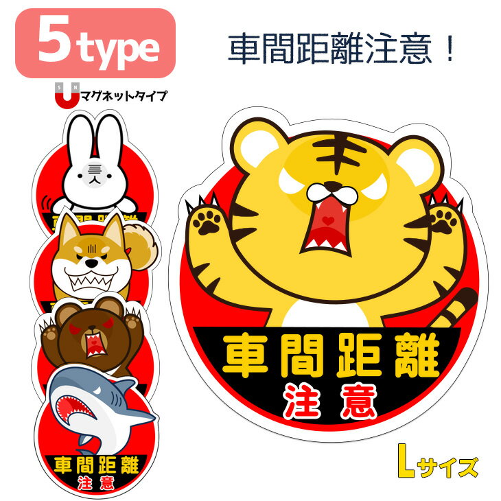【マグネット】車間距離注意 ステッカー 犬 安全運転 煽り防止 煽られないステッカー 注意 かわいい MT車 ミッション車 煽り運転 車 うさぎ サメ クマ 虎 トラ 猛虎 タイガー 【送料無料】