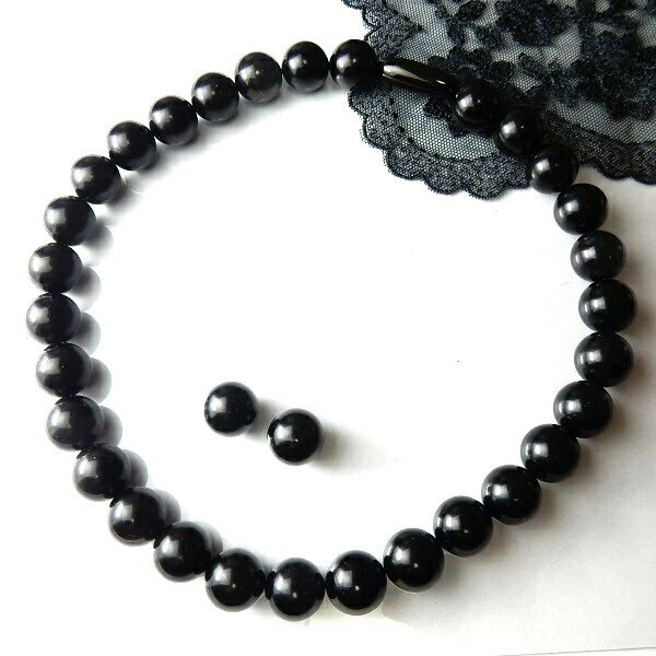天然ジェット ネックレス ジェットネックレス ブラックフォーマル 服喪 ワンランク上の撫順産ネックレス&イヤリング(ピアス)14mm珠セット選べるネックレスの長さ&イヤリング(ピアス)の珠ハードジェット研磨用セーム革付き