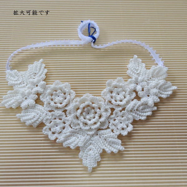 ミセスMさんの上品で品格のあるお花のネックレスアイボリーカラー日本製の手編み作品メール便発送