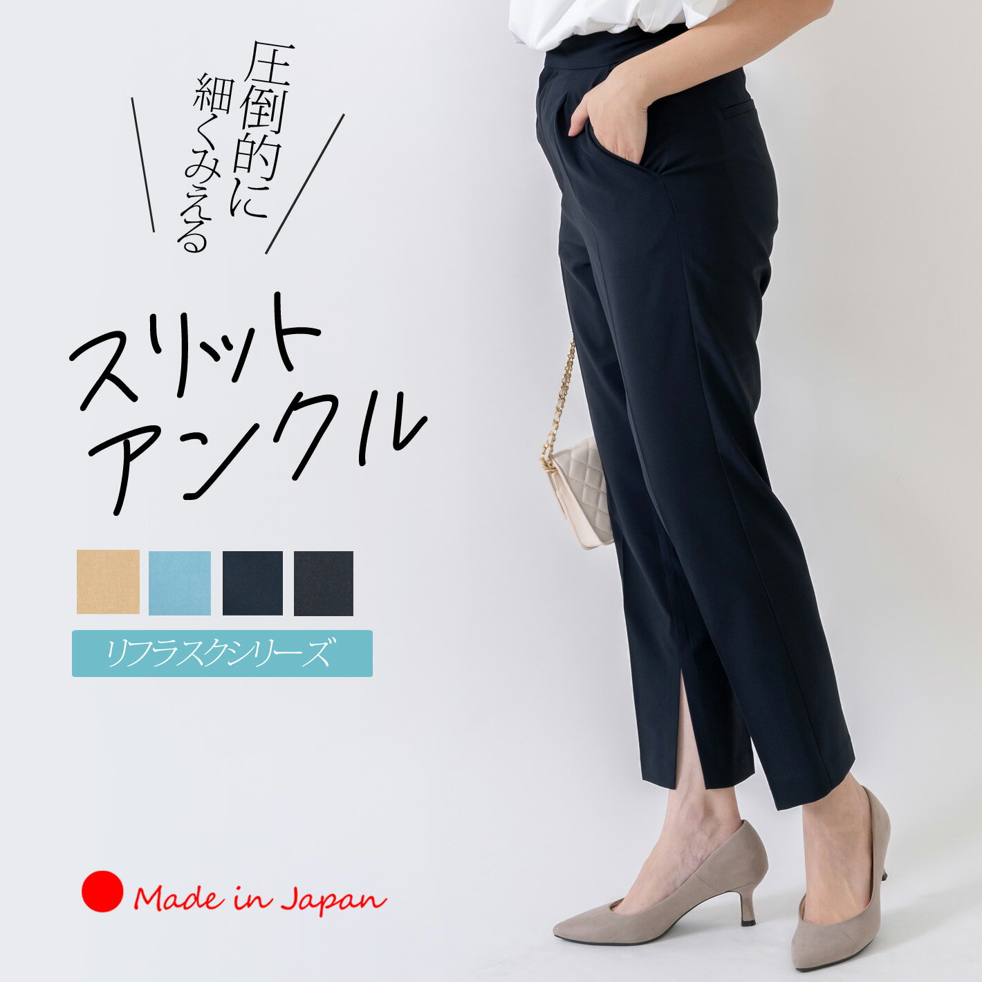 【 日本製 】 アンクルパンツ レディース きれいめ 夏 オフィス カジュアル 涼しい 接触冷感 麻調 スリット センタープレス クロップドパンツ タックパンツ ストレッチパンツ 仕事 大きいサイズ 春 秋【スリットアンクルパンツ】<5316>