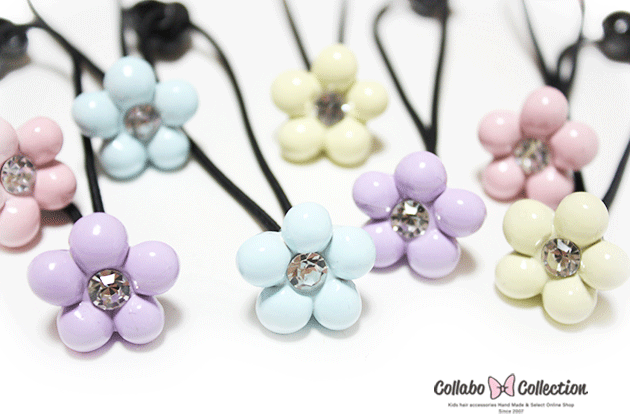 NEW!!【2本入り】ストーン入り★パステルお花パーツヘアゴム キッズ 子供 ヘアアクセサリー ヘアアレンジ 髪飾り髪留め 保育園 幼稚園 お花 パーツ