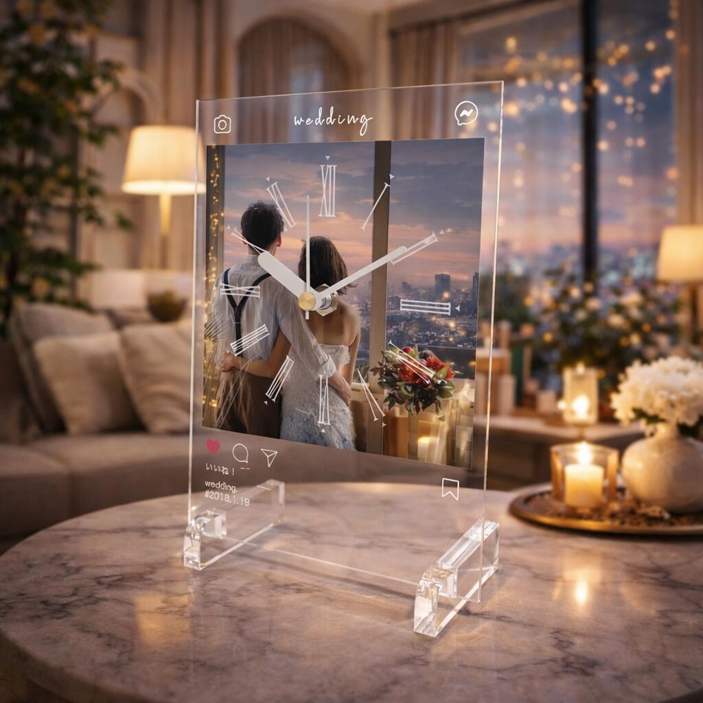 crylA クリラ 【LINEで簡単に写真を送れる】アクリル製オーダーメイド時計フォトクロック(横向)世界に一つの写真入りギフト プレゼント 誕生日 記念日 結婚 祝い