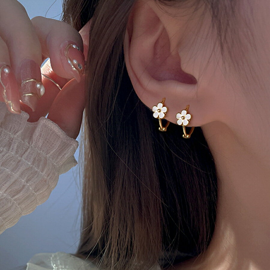 ホワイトフラワーデザインフープピアス ゴールド シルバー S925 デート 大人女子 レディース 送料無料 Mimi みみミミ ap293
