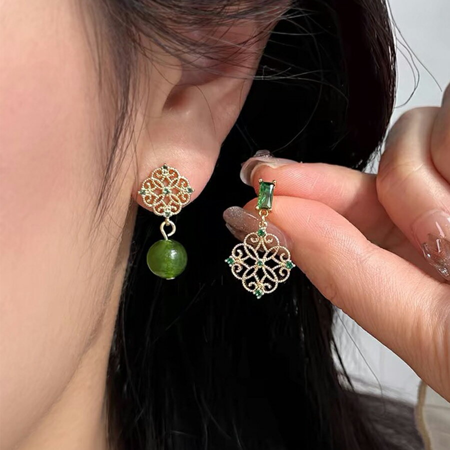 アシンメトリー透かしデザインピアス グリーン ポスト部分:S925 女子会 デート 大人女子 レディース 送料無料 Mimi みみミミ ap352