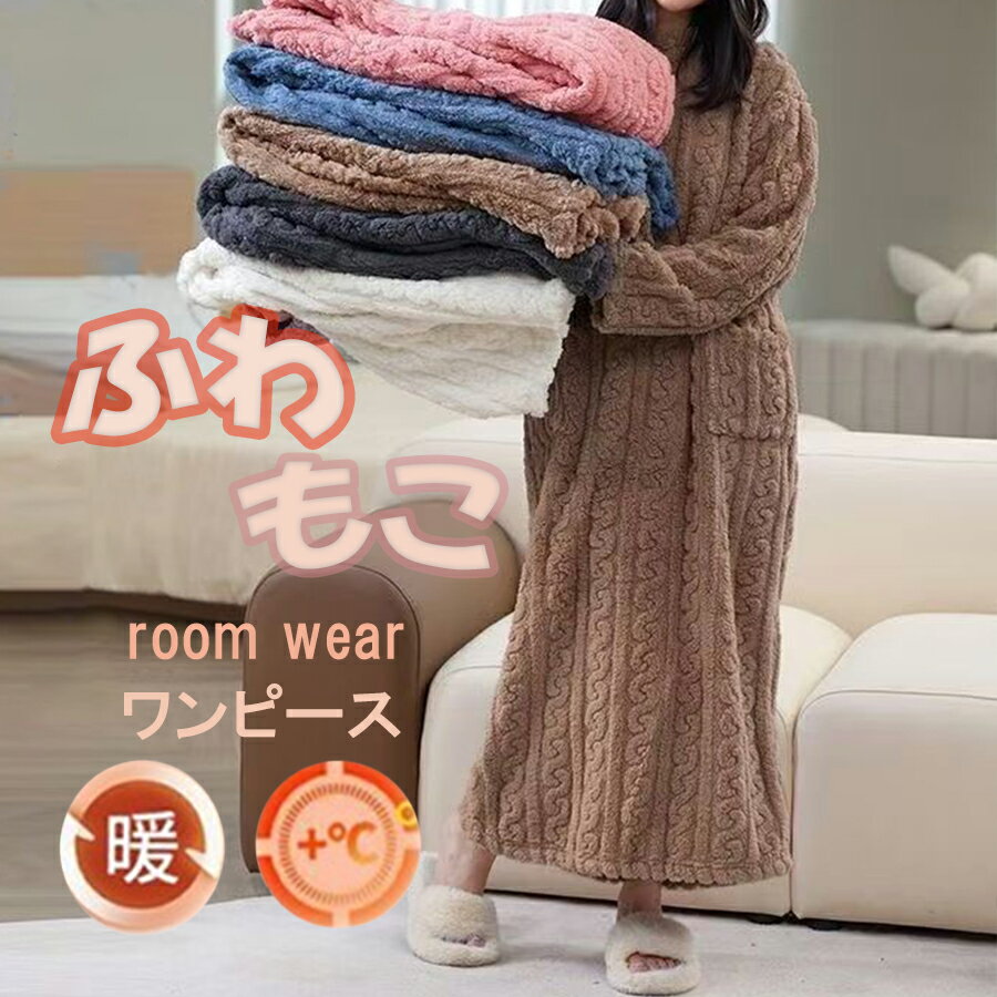 まるで着る毛布もこもこルームウェアワンピース ゆったり ふわふわ おうちタイム リラックス 無地 秋冬 レディース 送料無料 Mimi みみミミ cs016