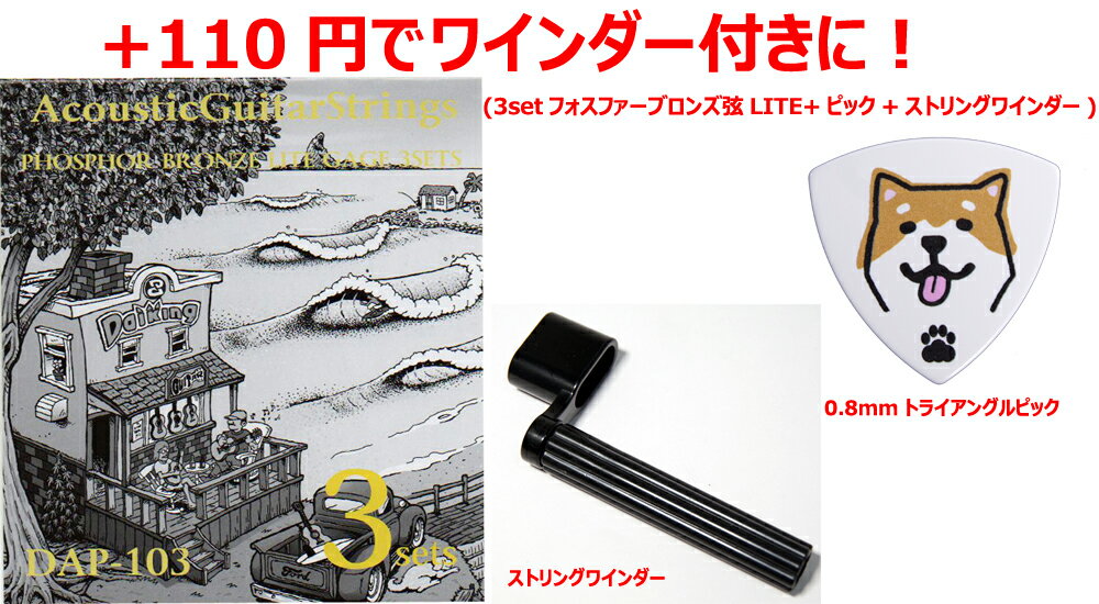 【3セット入り!】Daikingアコースティックギター弦フォスファーブロンズLITE/DAP-123 12-52×3セット+ギターピック0.8mm1枚+ストリングワインダー1個【送料無料】【クロネコネコポスにてポストへお届け】【在宅の必要無し!】