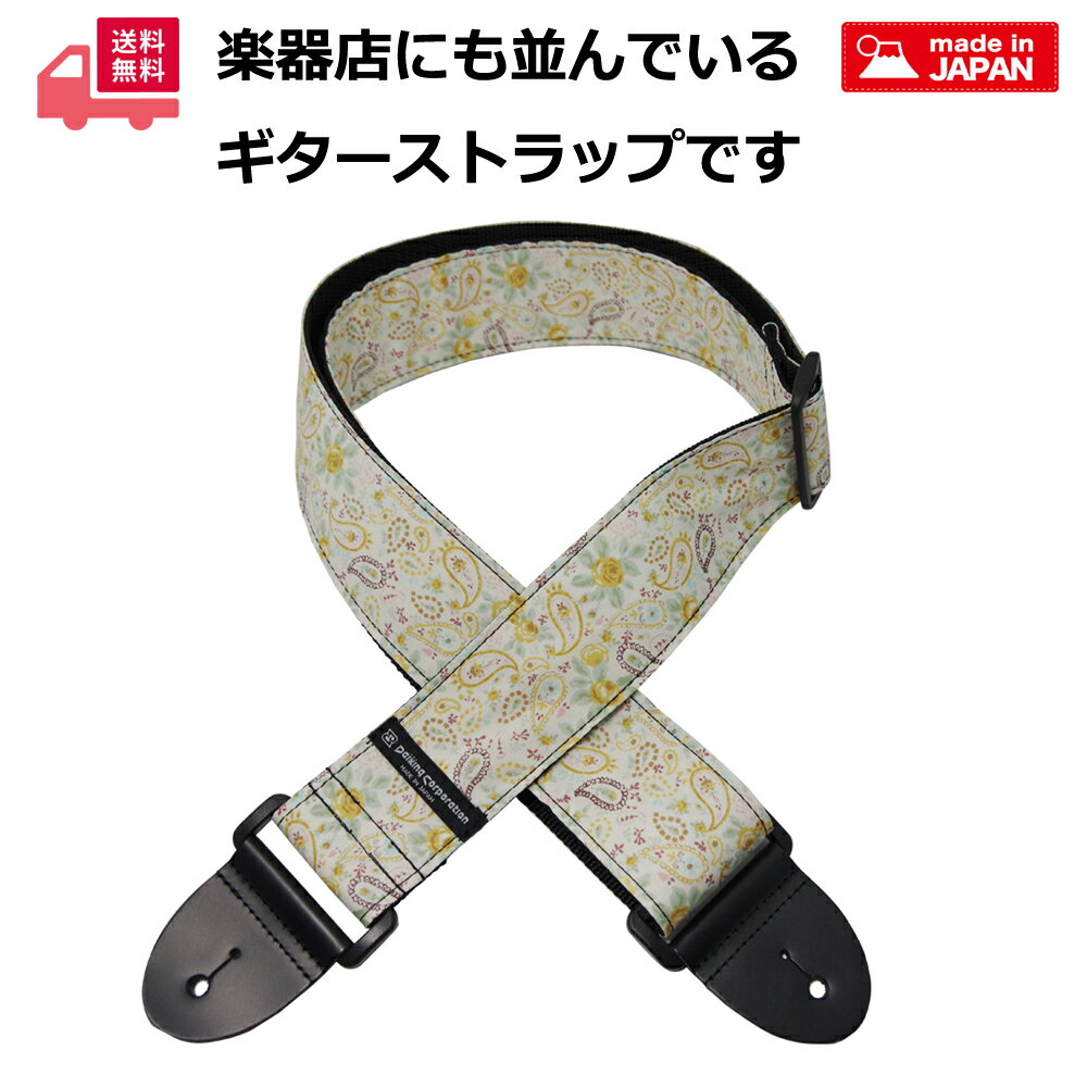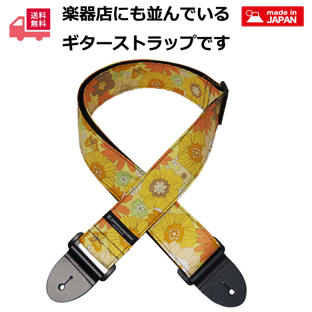 ギターストラップ レトロフラワー(花)柄イエロー 日本製 幅5cm エレキ・アコギ・ベース対応 長さ80–142cm Daiking