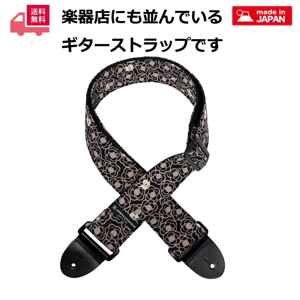 ギターストラップ フラワーねこの柄 日本製 幅5cm エレキ・アコギ・ベース対応 長さ80–142cm Daiking