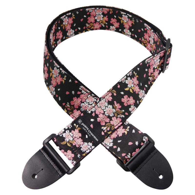 ギターストラップ 西陣織 金襴 "桜黒" 和柄 日本製 幅5cm エレキ・アコギ・ベース対応 Daiking DGS-NWS60