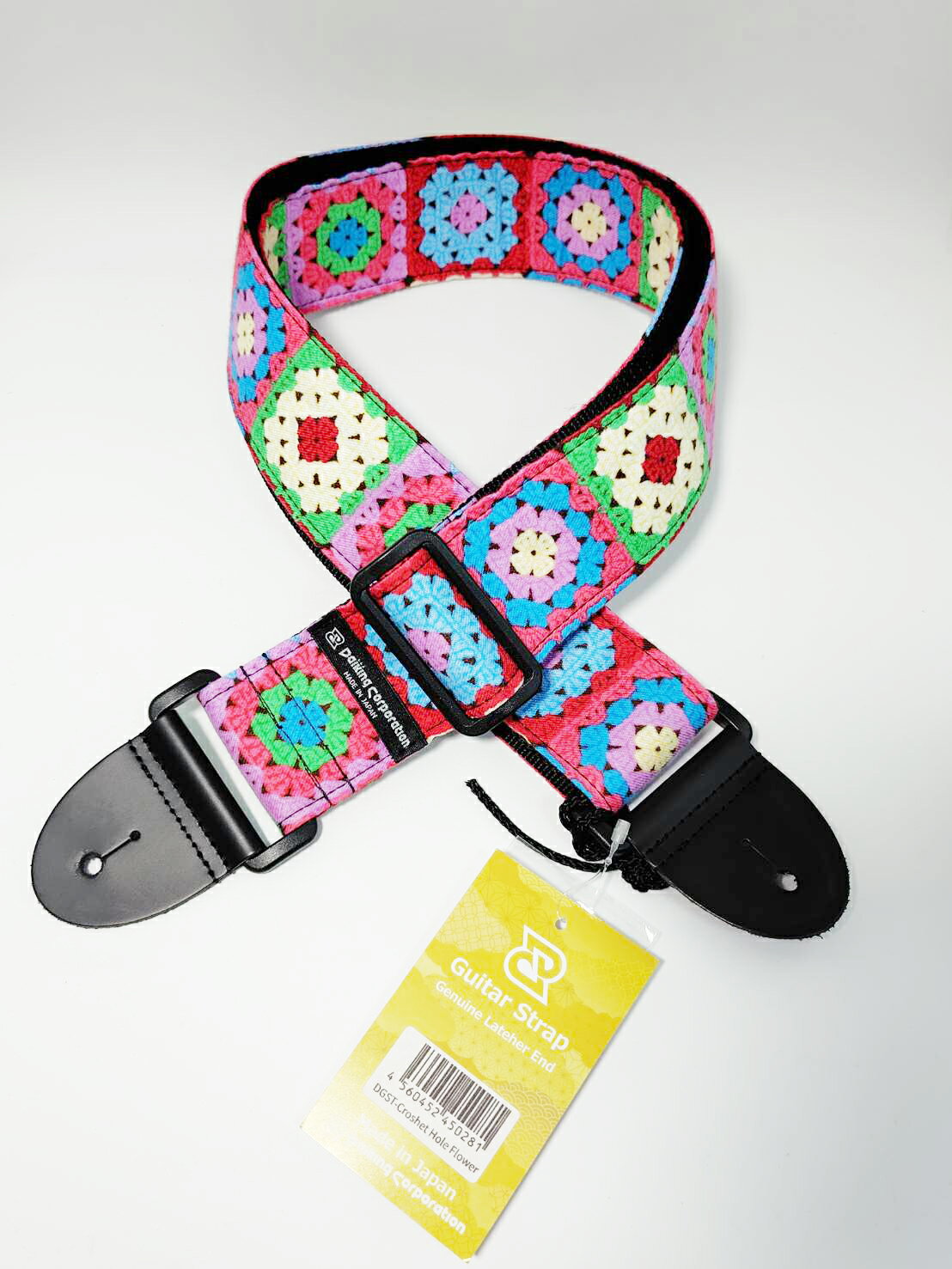ギターストラップ アウトレット エンドレザー取り付け跡あり クロシェットホールフラワー 日本製 幅5cm エレキ・アコギ・ベース対応 Daiking