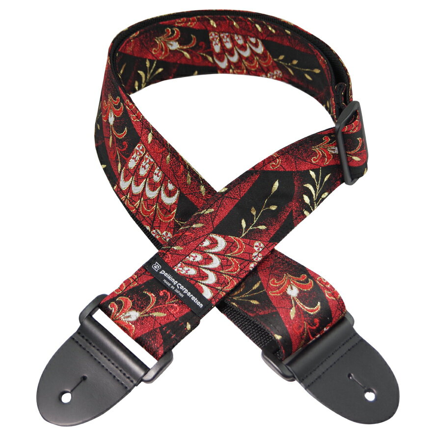 DGS-NKHA-60 西陣織りギターストラップ”金襴赤羽根重ね"