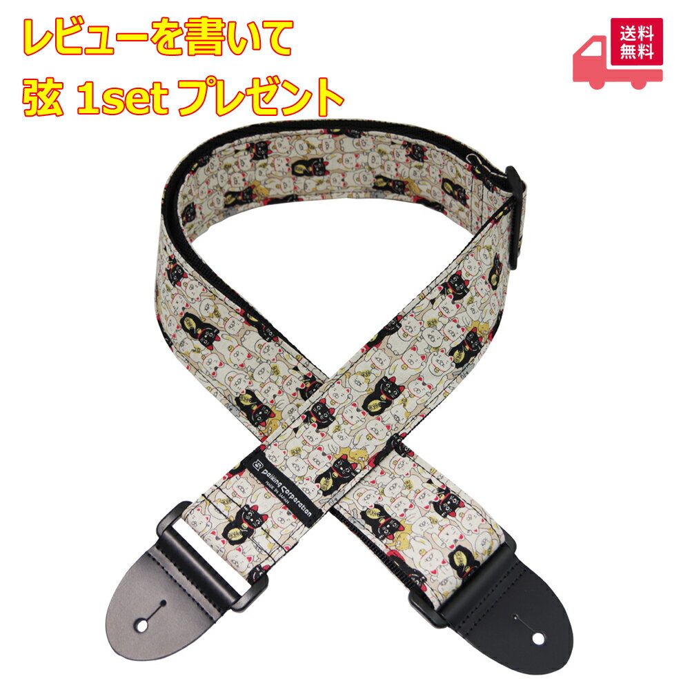 レビューを書いて弦プレゼント ギターストラップ 飛び魚とねこの柄 日本製 幅5cm エレキ・アコギ・ベース対応 長さ80–142cm Daiking