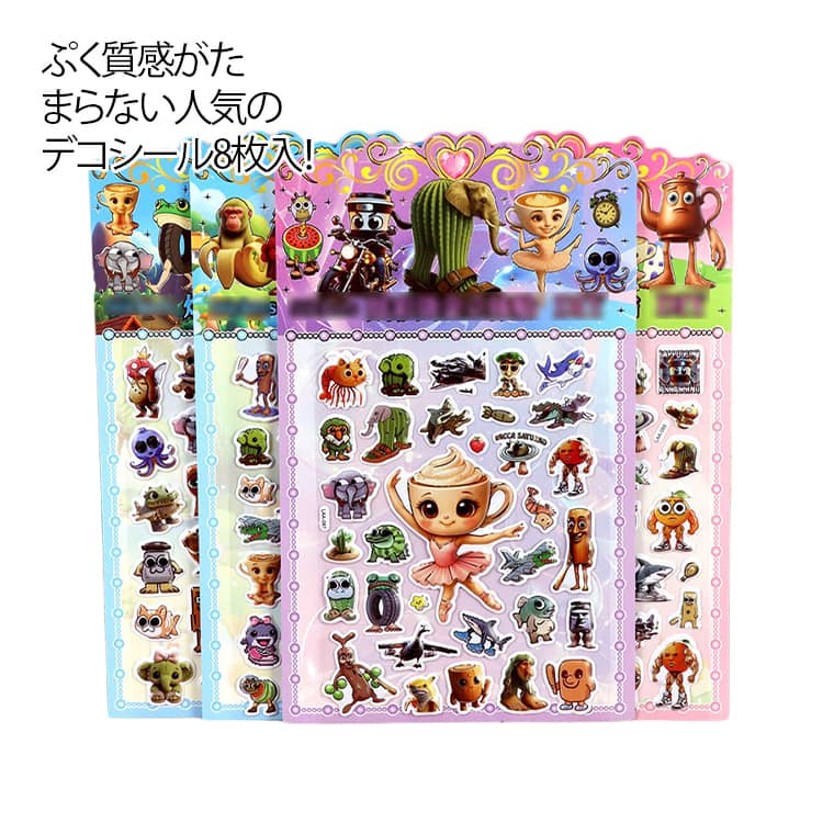 立体シール キャラクター 3Dシール シールセット 8枚入 可愛い デコステッカー ごほうびシール 手帳 ノート スマホケース 3Dぷっくり キャラクター 水筒 DIY用 文具 子供 大人 デコシール SNS人気 人気 アニメ風 プレゼント おもちゃ クリスマス
