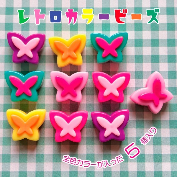 レトロ 蝶 ちょうちょ ビーズ キーホルダー ネックレス パーツ キッズアクセサリー アクセサリー ハンドメイド DIY 資材 デコパーティ