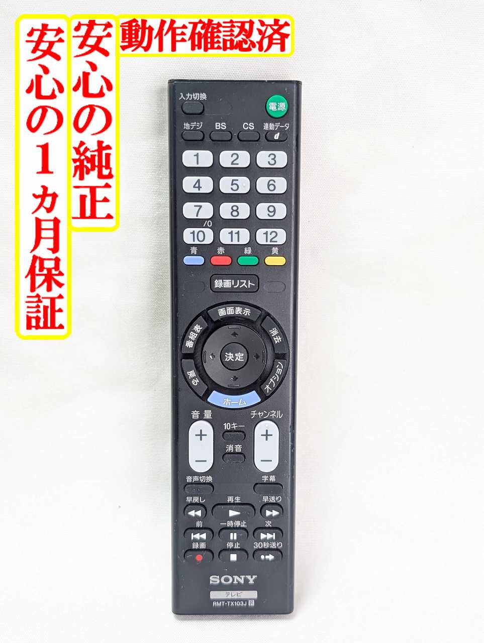 【中古】即日発送 除菌済 RMT-TX103J ソニー BRAVIA 純正 テレビ リモコン (KJ-32W500C KJ-24W450D 対応) 長期保証 (1-493-068-11)