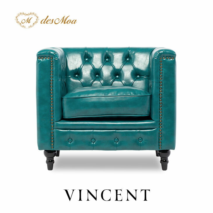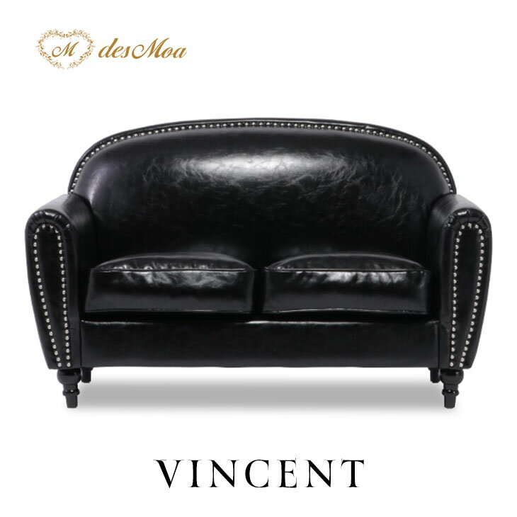 VINCENT ヴィンセントシリーズ 2人掛けソファ アールデコスタイル 2シート ソファー 英国アンティーク調 高級感 おしゃれ モダン クラシカル 輸入家具 店舗什器 撮影什器 レストラン ホテル カフェ ロビー ラウンジ 書斎 応接室 合成皮革 合皮 黒 シャインブラック VD2P51K