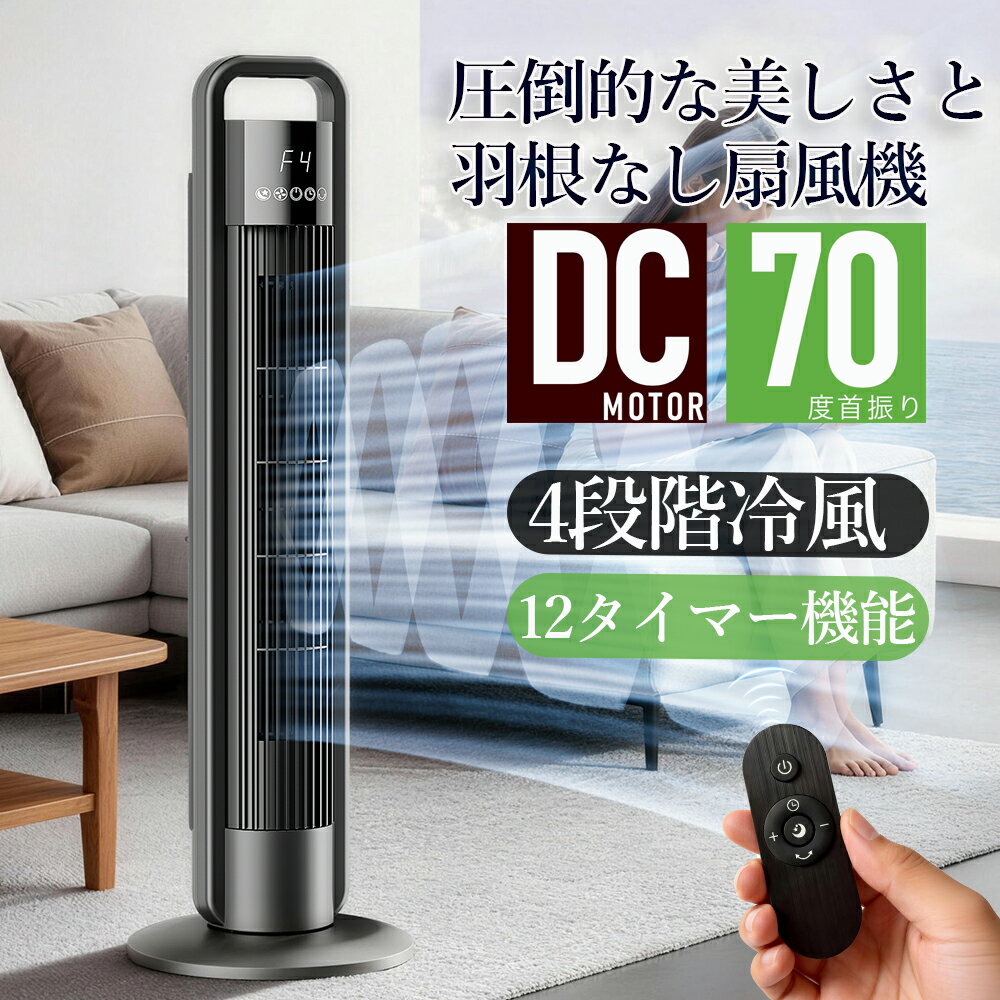 クーポンで7580円【2026最新】羽根なし扇風機 タワーファン スリム 静音 リモコン付き 12時間タイマー 70度首振り 扇風機 おしゃれ 4段階風量 睡眠モード 切タイマー 赤ちゃん ベビー 安全 持ち手付 省エネ 縦型 送風機 リビング 寝室 暑さ対策 熱中症対策 1年保証 送料無料