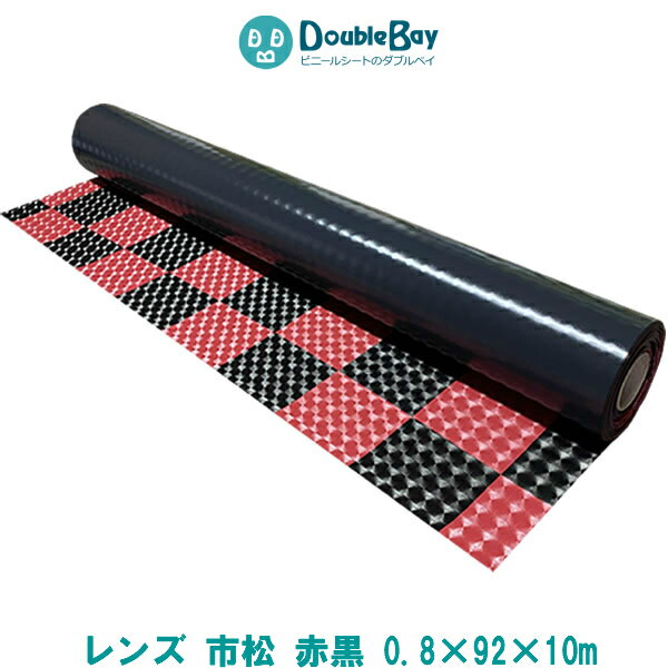 ビニールマット レンズ 市松模様 赤黒 厚み0.8mmx幅92cmx長さ10m【巻き】 置き敷き ビニールシート 塩ビシート 塩ビマット 養生シート 養生マット PVC 格子 チェック レッド ブラック 棚 床 保護 ベランダ 車内 工場内 展示会 イベント