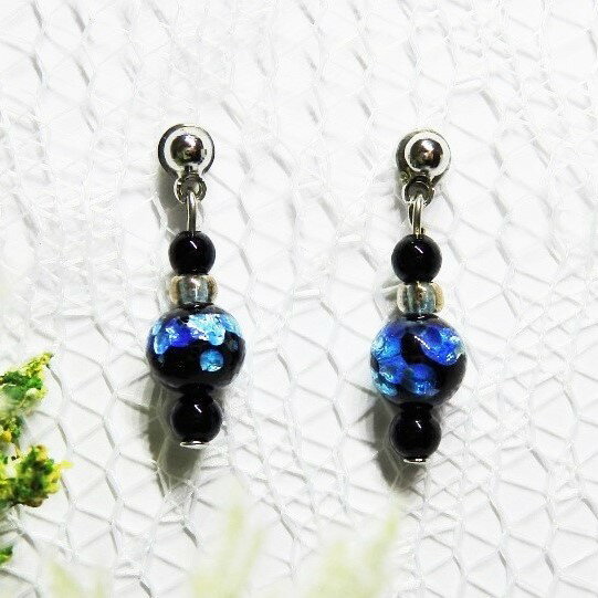 FDAピアス 銀色の星をちりばめた瑠璃色の樹脂ボール/8ミリ玉 ピアス ぶら下がりピアス ロングタイプ 敏感肌でもかゆくなりにくい 金属アレルギー対応 アレルギーフリー チタン チタン合金 医療用金属 瑠璃色 紺 樹脂ボール プレゼント F392