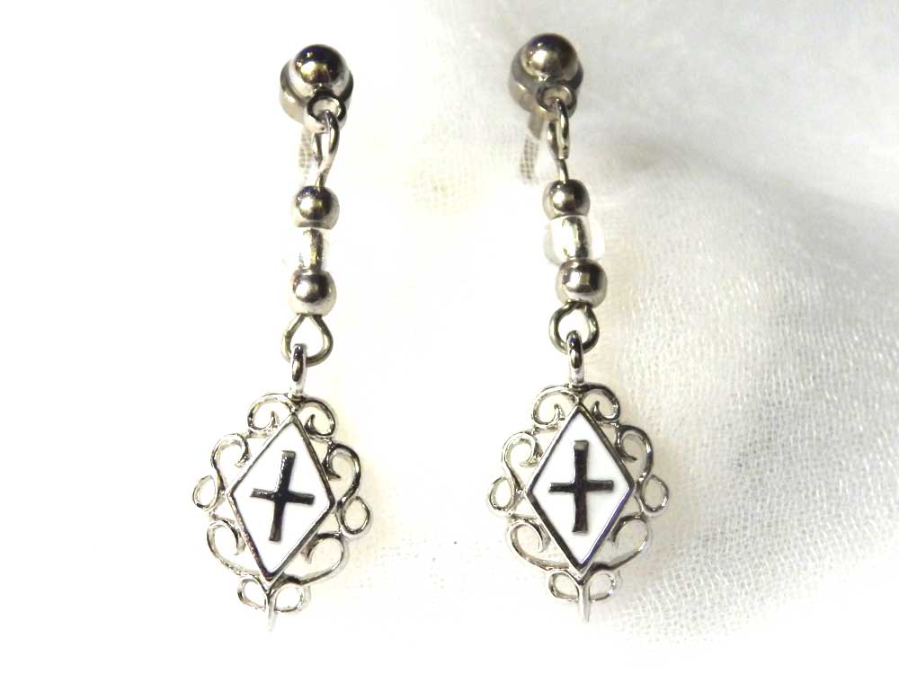 敏感肌でもかゆくなりにくい金属アレルギー対応のFDAピアス 白のエナメルクロス(ロングタイプ)ぶら下がり/ロングタイプ FDAピアス 金属アレルギー対応 ピアス チタン チタン合金 アレルギー 金属アレルギー クロス ぶら下がり プレゼント FDA362