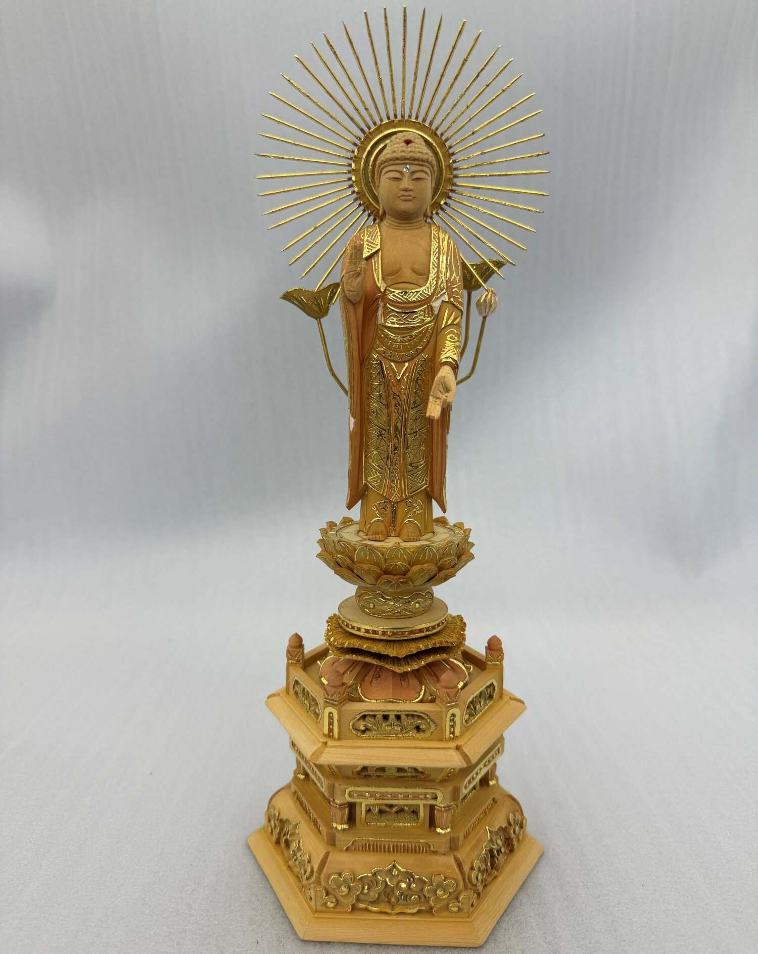 仏像 阿弥陀如来 立像 白木 切箔仕上げ