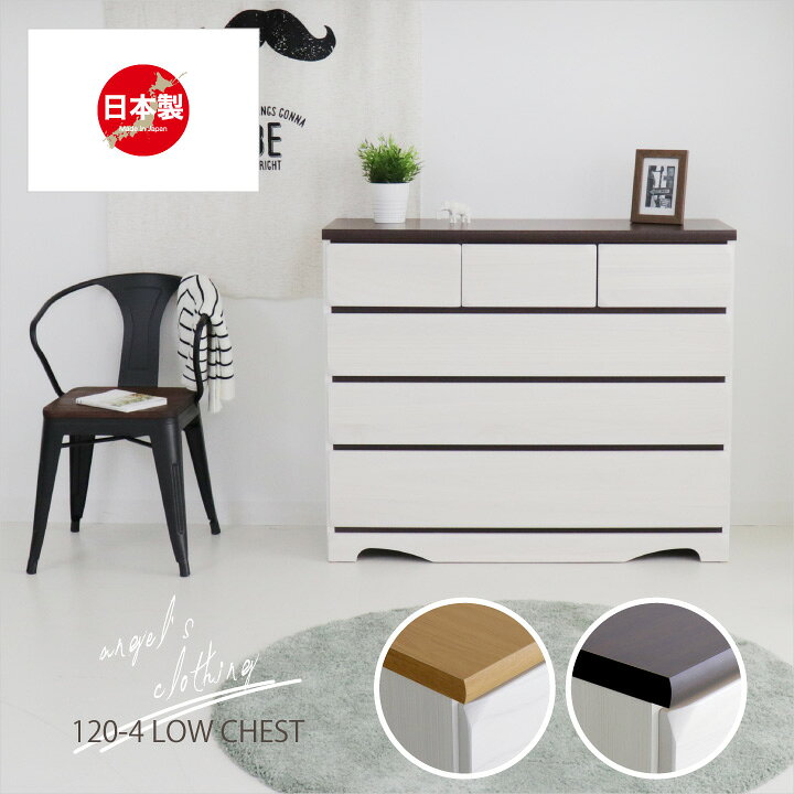 チェスト 完成品 ローチェスト 120 タンス 箪笥 幅120 4段 スライドレール 引き出し 箱組 / リビング収納 たんす 衣類収納 収納力 シンプル ナチュラル 天然木 木目 大容量 収納 日本製 大川家具 国産 通販 送料無料 sf-0053