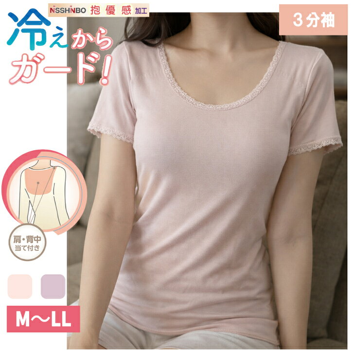 日本製 綿100% 7分袖 レディース 婦人 肌着 インナー 肩当て付 背中当て付 冷え対策 冷房対策 シニア 高齢 ピーチ/モカ M-LL 14454