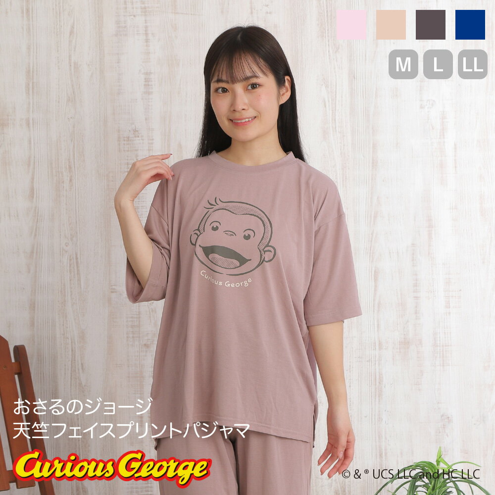 【Casper】 キャスパー 天竺Tスーツ パジャマ レディース メンズ キャラクター ホームウェア ルームウェア 部屋着 夏 ゆったり おしゃれ かわいい ベージュ パープル フレンチスリーブ スリット リラックス