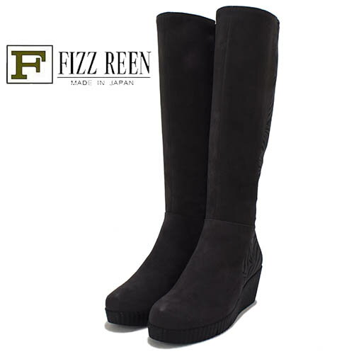 FIZZREEN フィズリーン 本革(ヌバック)X生地(ストレッチ)ウエッジヒール ロングブーツ