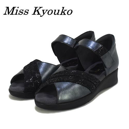 ミスキョウコ 牛革Xナイロンポリウレタン メッシュ オープントウ サンダル